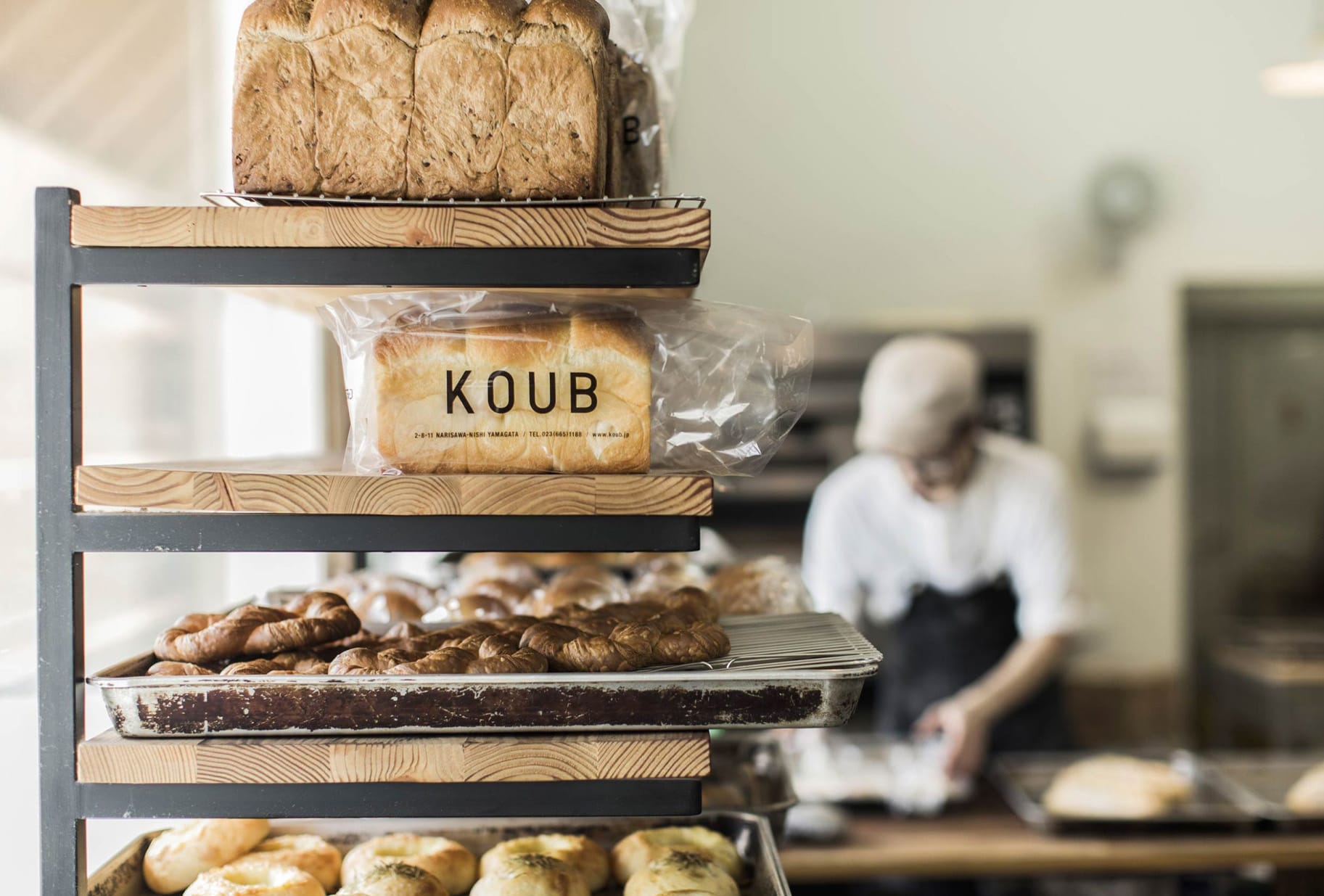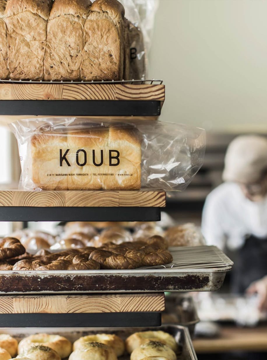 KOUBは山形市成沢にあるパン屋です。デニッシュ、湯種、シリアルなど様々な食パンをメインに、季節の果物、牛乳など山形県産の食材をふんだんに使った約40種類の焼き立てのパンを並べ、みなさんのお越しをお待ちしております。
